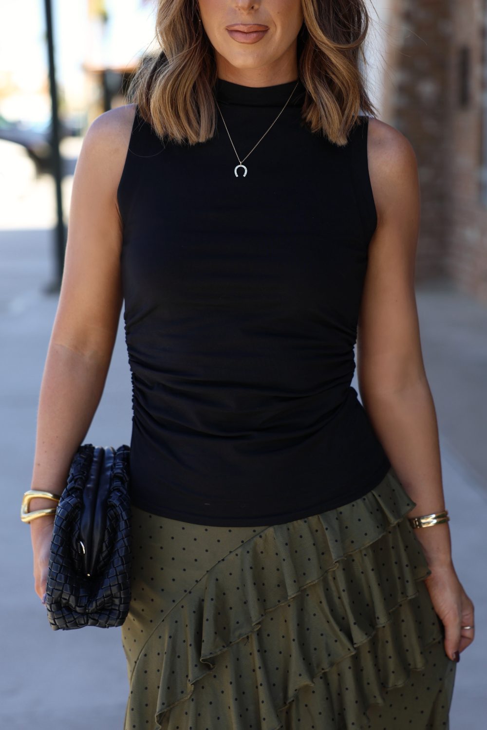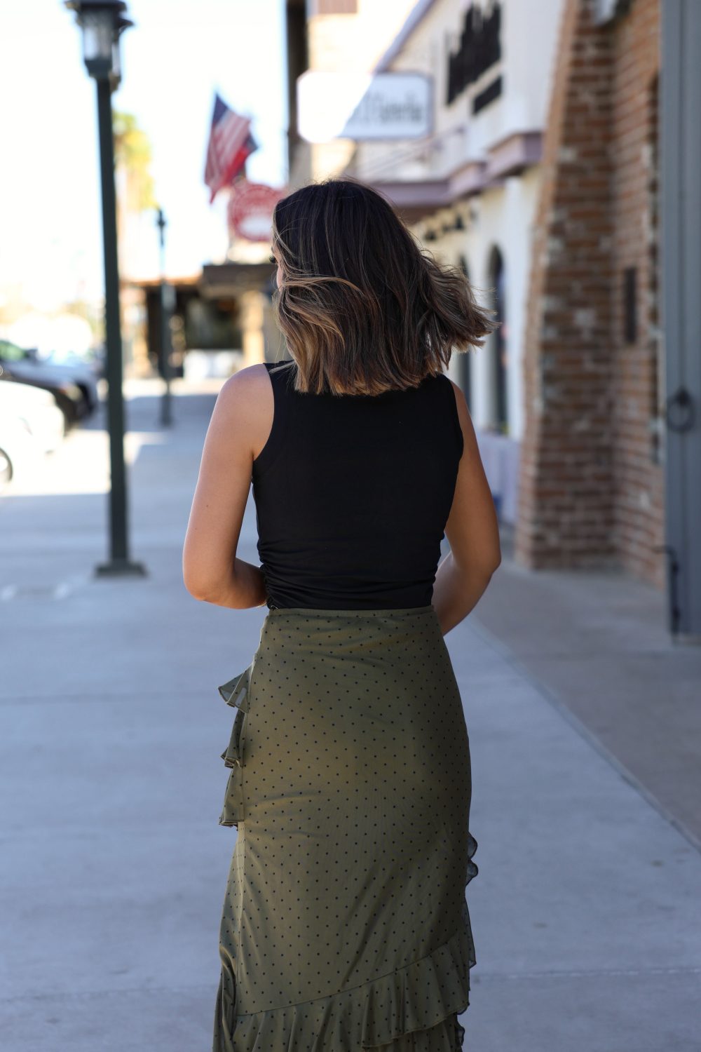 Details Knit tank topAdjustable spaghetti strapsPeplum waistSquare neckline Materials and Care Self: 49% Viscose, 23% Nylon, 28% PolyesterLining: 100% CottonHand wash coldLine dry All sale items are final sale.